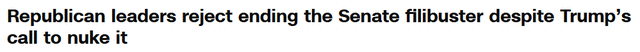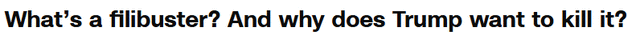 川普呼吁废除阻挠议事的做法完全在意料之中,这一制度多年来一直令国会多数党头疼不已。